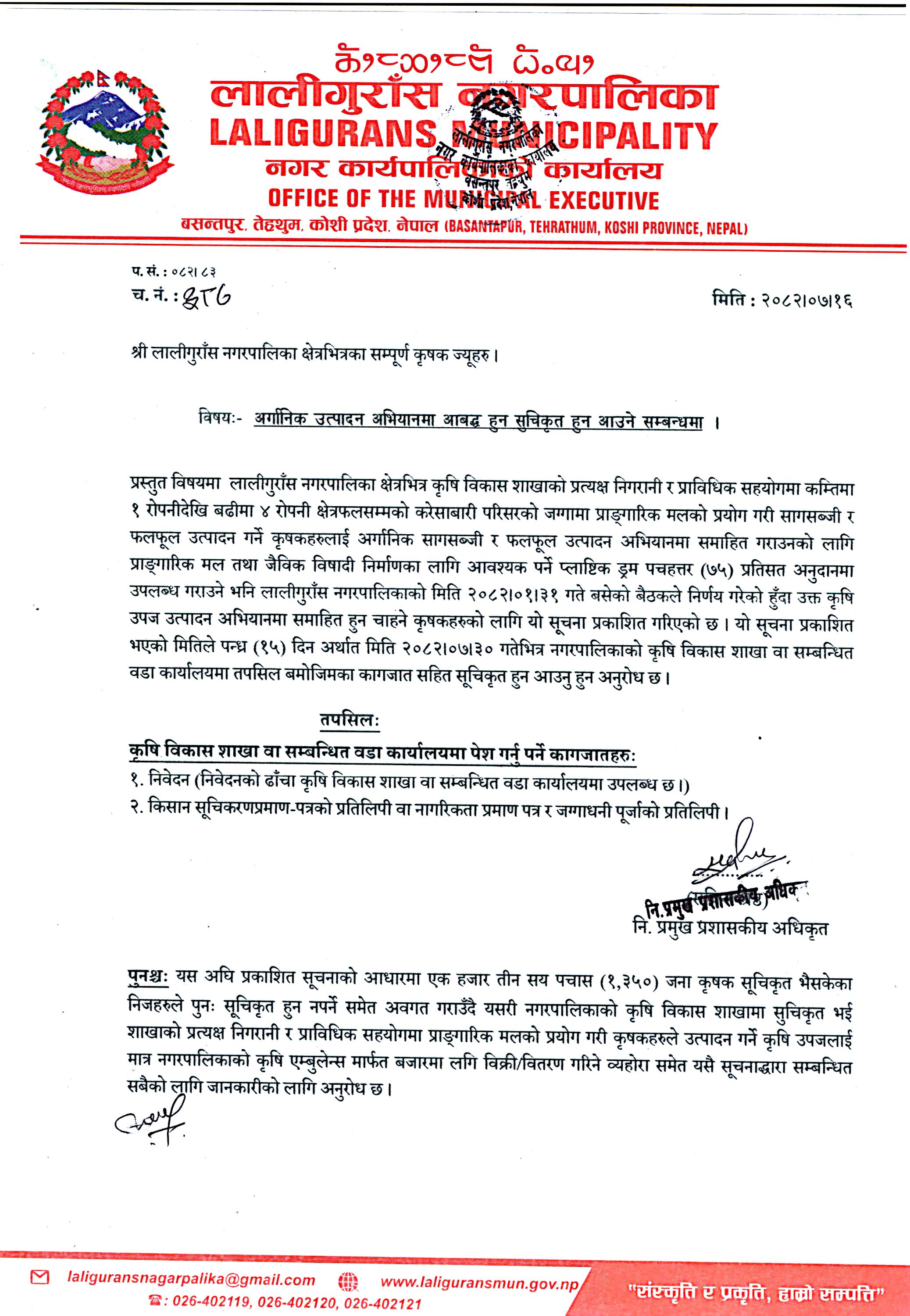 अर्गानिक उत्पादन अभियानमा सूचिकृत हुन आउने सम्बन्धमा ।