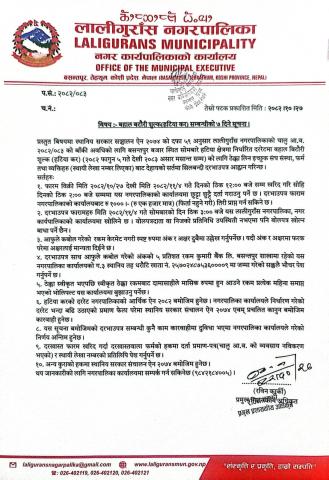 बहाल बटौरी शुल्क (हटिया कर) सम्बन्धीको ७ दिने सूचना ।